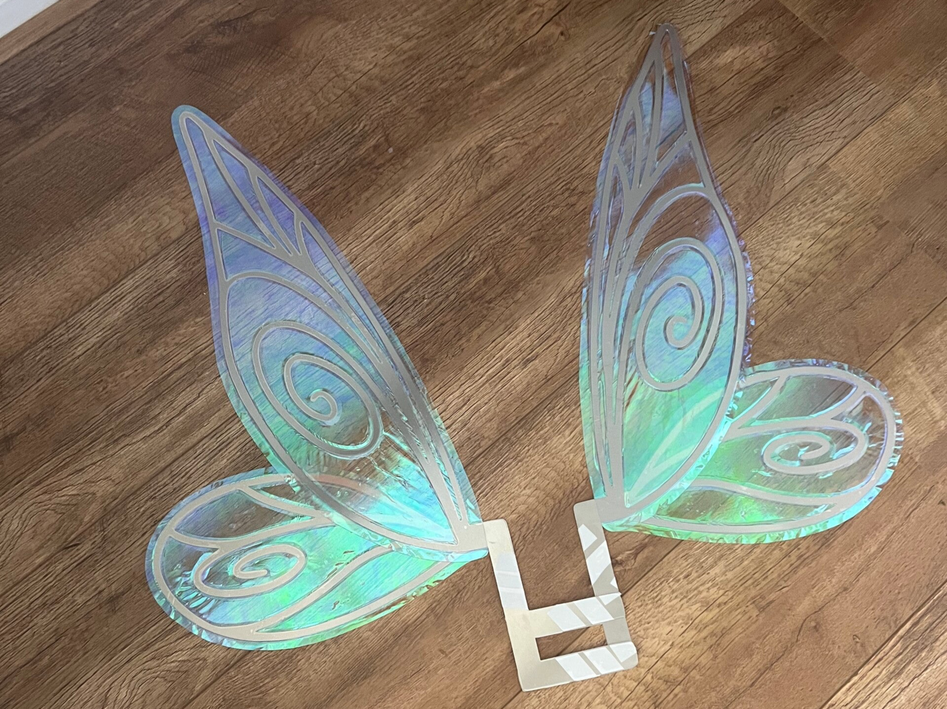 Lightweight and unique! These fairy wings inspired by the fairies shown in de parks are crafted from 1.5mm aluminum and vinyl, with small imperfections like bubbles or creases that make each pair truly one-of-a-kind. For a playful effect, the wings can be gently bent, but avoid frequent bending to prevent metal fatigue. Perfect for costumes, photoshoots, or adding a touch of magic!